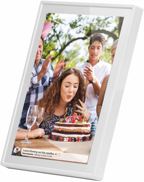 Hochwertiger 10.1" (25,65cm) IPS Bildschirm mit Touchfunktion und einer Auflösung von 1280x800. Integrierter G-Sensor zur automatischen Anpassung der Bilddarstellung (Quer- und Hochformat). 16 GB interner Speicher für bis zu 1000 Bilder, integriertes WiFi-Modul mit 802.11 b/g/n Standard.