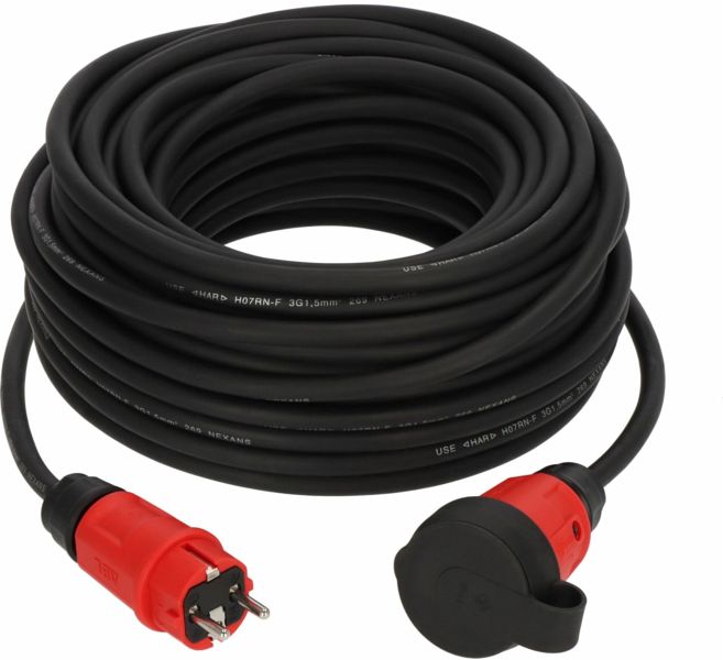 Das extrem robuste 25 m Professional Verlängerungskabel in der Farbe schwarz eignet sich dank der Schutzart IP44 und dem ölbeständigem RN-Kabel ideal für den Baustelleneinsatz oder allgemein für den ständigen Einsatz in Außenbereichen. Das Outdoor-Verlängerungskabel ist flexibel einsetzbar und mechanisch hoch belastbar.