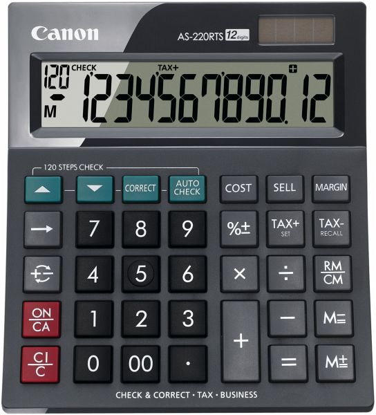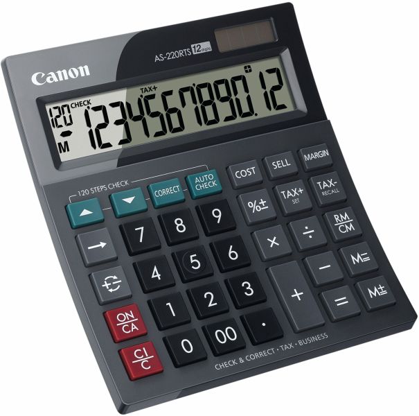 Wirtschaftlicher Rechner - im "Arc Design", ein leichtes Modell mit einem geschwungenen, extra großen, angewinkelten LCD-Display, das man sehr gut ablesen kann. Dieser 12-stellige kompakte Tischrechner bietet praktische Business- und Steuerberechnungsfunktionen sowie eine Korrekturfunktion für 120 Rechenschritte.