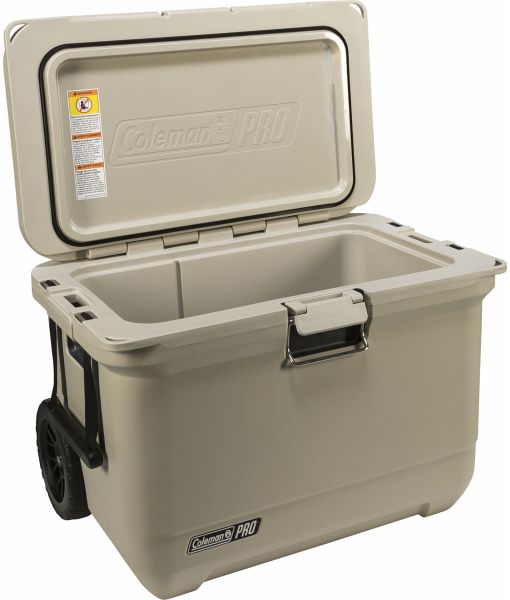 Die Coleman PRO 55QT Kühlbox besticht durch ihr robustes Design und die hervorragende Isolierung mit einer Kühlleistung von bis zu 5 Tagen. Mit praktischen Funktionen Öffnen und Schließen mit einer Hand und einem Schultergurt für den einfachen Transport ist sie der ideale Begleiter für Outdoor-Abenteuer.