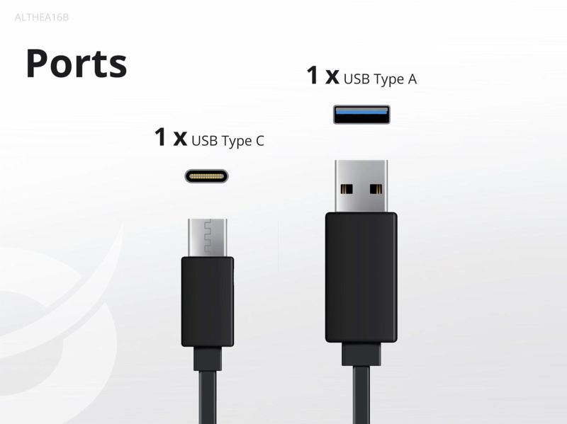 - Anschlüsse: 1x USB-C, 1x USB-A