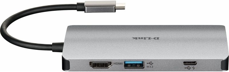 D-Link DUB-M810 Kompakter USB-C Hub mit 8 Anschlüssen inkl. 4K-HDMI & Gigabit-LAN, grau