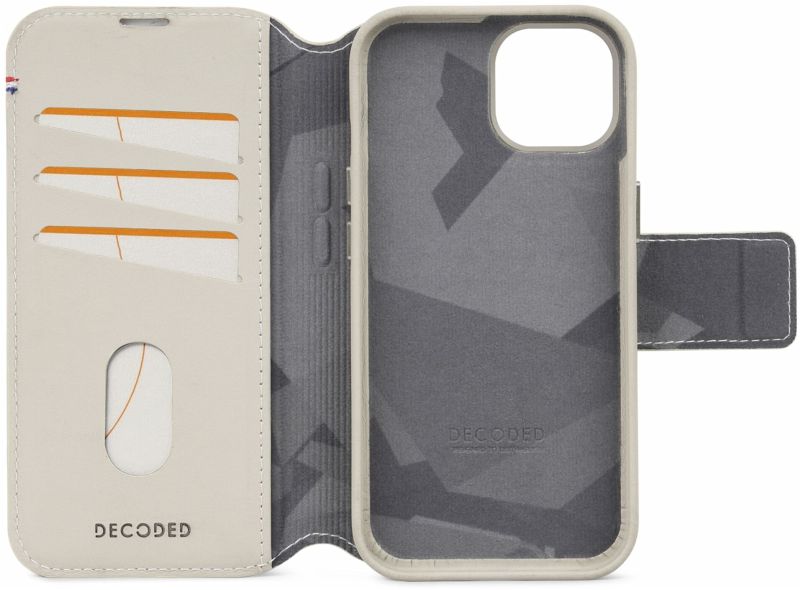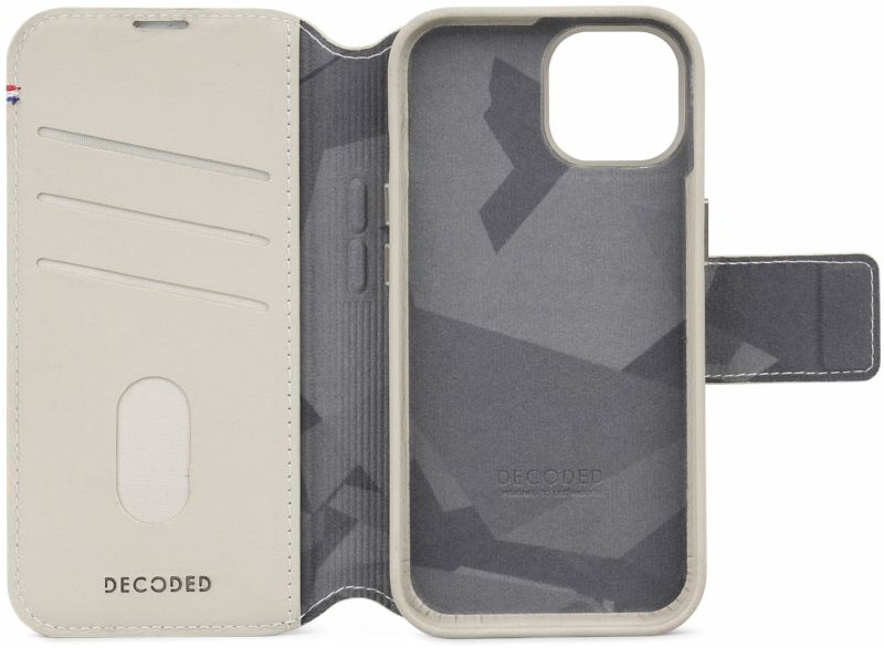 Die abnehmbare Brieftasche ist aus Echtleder gefertigt und kann mittels integriertem Magnetverschluss sicher verschlossen werden. Im Inneren ist Platz für bis zu drei Karten und Geldscheine. Gleichzeitig schützt die Klappe das Display des Smartphones vor Kratzern. Über die sowohl in der Brieftasche als auch in der Schutzhülle integrierten Magnete und die MagSafe-Magnete des iPhones wird die Brieftasche mühelos und sicher an der Schutzhülle fixiert.