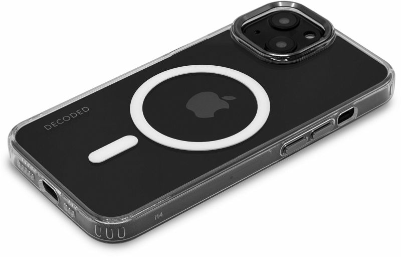 Ein schlichter, minimalistischer Look für das iPhone: Diese transparente Hülle aus recyceltem Polycarbonat schützt das iPhone zuverlässig und bringt gleichzeitig das Design des Smartphones zur Geltung. Ein erhöhter Rand bewahrt das Display vor Kratzern und das stoßsichere TPU schützt das iPhone bei Stößen und Stürzen. Ein anthrazitfarbener, metallener Kameraring dient als optisches Highlight und schützt gleichzeitig die Kamera des iPhones. Dank der integrierten Magnete ist die Schutzhülle MagSafe-kompatibel und lässt sich unkompliziert und sicher an MagSafe-Accessoires ausrichten. Die Metallknöpfe sorgen für eine besonders gute Handhabung.