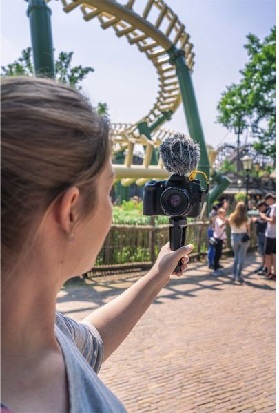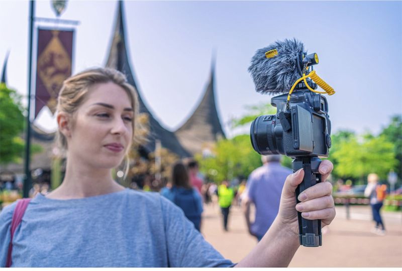 Das D4 Mini nutzt eine Art von versetztem Shockmount und wird so zum perfekten Mikrofon für weitwinklige Vlogging-Kameras oder Action-Cams. Da der Klinkenausgang an der Seite angebracht ist, kann das Okular an hybriden DSLRs noch genutzt werden, um Fotos aufzunehmen. Das Mikrofon besitzt einen Klinkeneingang, dieser ermöglicht das Splitten von Stereo-Audiotracks und das einfache Hinzufügen einer zweiten Audioquelle, wie eines Funkmikrofons, ohne ein Splitterkabel zu nutzen.