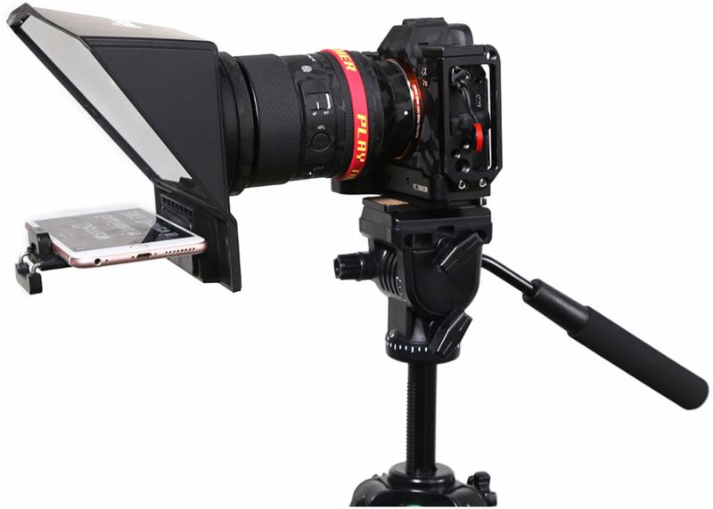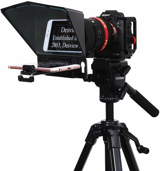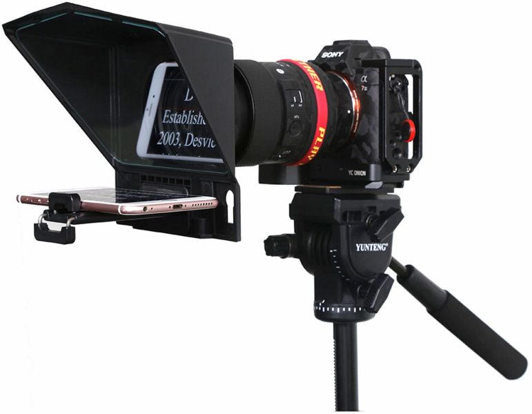 Der Desview T2-Teleprompter wurde speziell für die Verwendung mit einem Smartphone, Tablet und einer DSLR-Kamera entwickelt, ist einfach zu bedienen und bequem zu tragen.