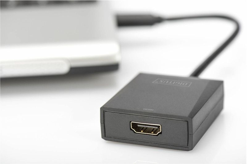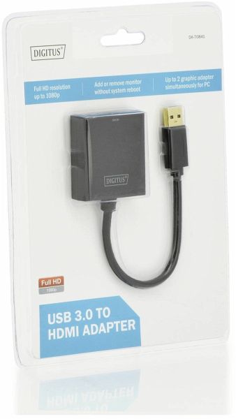 Der DIGITUS USB 3.0 zu HDMI Adapter erweitert Ihren Arbeitsplatz mit einem zusätzlichen Monitor, Fernseher oder Projektor über die USB Schnittstelle. Zusätzlich können Sie 2 Grafikadapter gleichzeitig an dem PC nutzen und einen Monitor hinzufügen oder entfernen ohne einen Neustart des Systems zu vollziehen. Außerdem unterstützt dieser Adapter eine Auflösung bis zu 1920 x 1080, Video Streaming bis 1080p und mehrere Wiedergabemodi wie Haupt-/ erweitertes Display und Spiegelung. Der USB 3.0 zu HDMI Adapter besticht mit seinem edlen schwarzen Gehäuse und ohne zusätzliche Installation von Grafikkarten. Denn sobald der Treiber installiert ist, wird der über USB angeschlossene Monitor sofort aktiviert. Die Stromversorgung erfolgt über USB, somit wird kein zusätzliches externes Netzteil benötigt.