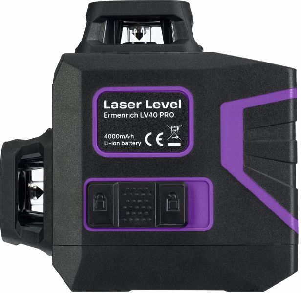 Das Ermenrich PRO LV40 ist mit einem Kompensator ausgestattet, der die Laserebene ausrichtet und so Vibrationen reduziert. Die Präzision ist recht hoch - mit einem Messfehler von nur 1,5 mm pro 5 m. Der integrierte Akku bietet eine Betriebsdauer von bis zu 42 Stunden (bei niedriger Helligkeitsstufe). Es stehen vier verschiedene Helligkeitsstufen der Laserlinien zur Verfügung, so dass Sie je nach Lichtverhältnissen die ideale Option wählen können. Das Laserniveau ist für den Betrieb in einem breiten Temperaturbereich ausgelegt und staub- und spritzwassergeschützt.