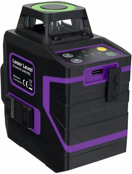 Das Ermenrich PRO LV40 Laserniveau ist ein vielseitiges Instrument, das sich bestens für Bau-, Renovierungs-, Dekorations- und Installationsarbeiten eignet. Der horizontale und vertikale Schwenkbereich beträgt 360° und die Arbeitsdistanz bis zu 30 Meter. Daher kann das Instrument zum Nivellieren von Oberflächen und für andere Aufgaben in größeren Räumen verwendet werden. Das Laserniveau erzeugt insgesamt 8 Linien - genau das, was Sie für die meisten Aufgaben benötigen.