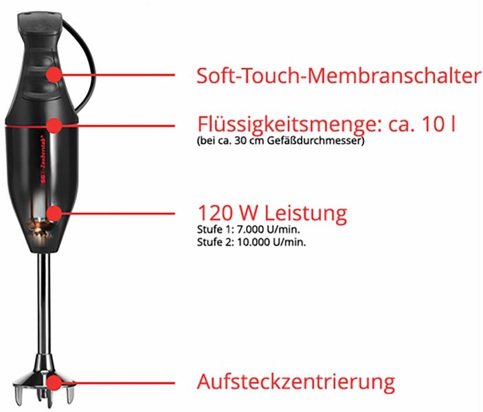 Geschwindigkeitsstufen: 2Multimesser: JaSpülmaschineneignung: NeinWandhalterung: JaKabellos: Nein