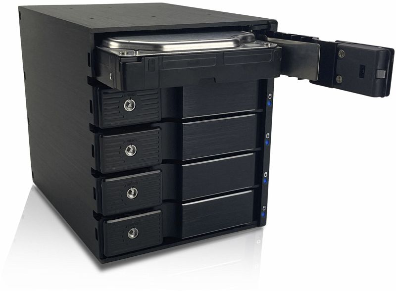 - Trägerlose schnelle Montage und Wechsel der Festplatten ohne Schrauben