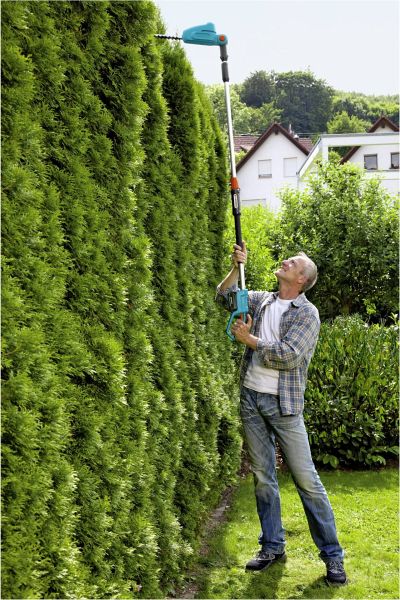 Akku-Heckenschere mit Teleskopstiel für hohe Hecken