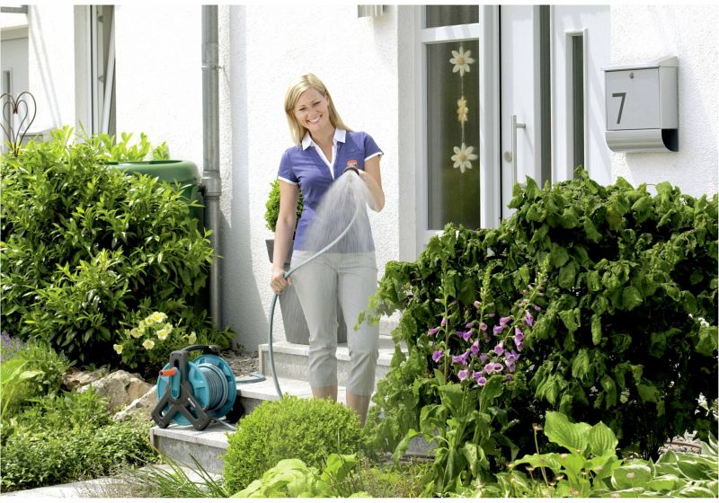 Dank der kompakten Bauweise und der einklappbaren Kurbel lässt sich die Schlauchtrommel platzsparend aufbewahren. So lässt sie sich auch noch auf kleinstem Raum aufbewahren.