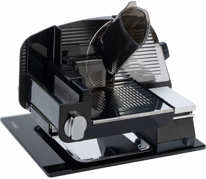 Der Master M95 in edlem Eisenglimmergrau und mit hygienischer Glasbodenplatte ist ein Highlight in jeder Küche. Das hochwertige Vollstahlmesser in Gewerbequalität ist durch eine abnehmbare Messerabdeckplatte geschützt und unterstützt durch den Hohlschliff das Schneiden von hauchdünnen Scheiben. Eine Kindersicherung durch Einschaltsicherung sorgt für zusätzliche Sicherheit.
