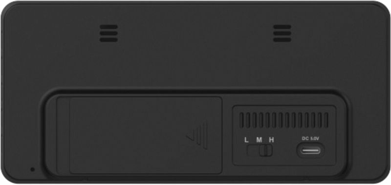 Wecker mit digitaler Anzeige von Uhrzeit, Weckzeit, Temperatur und Datum.