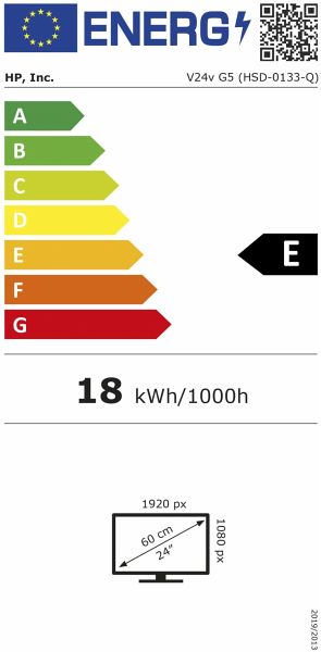 Marke: HPModellkennung: V24v G5Energieeffizienzklasse von A (höchste Effizienz) bis G (niedrigste Effizienz): ELeistungsaufnahme im Ein-Zustand (kWh/1000h): 18Energieeffizienzklasse im HDR-Modus von A (höchste Effizienz) bis G (niedrigste Effizienz): -Leistungsaufnahme im Ein-Zustand im HDR-Modus (kWh/1000h): -Sichtbare Bildschirmdiagonale (cm): 60Sichtbare Bildschirmdiagonale (Zoll): 24Bildschirmauflösung (Pixel): 1920 x 1080