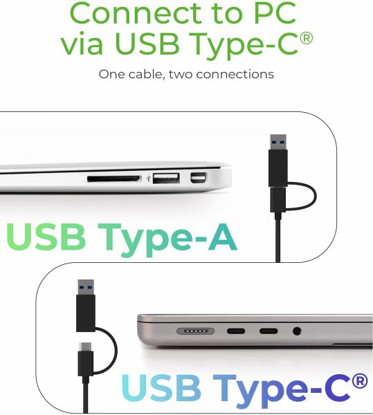 - Anschluss zum Hostcomputer: USB 3.2 Gen 2 Type-C