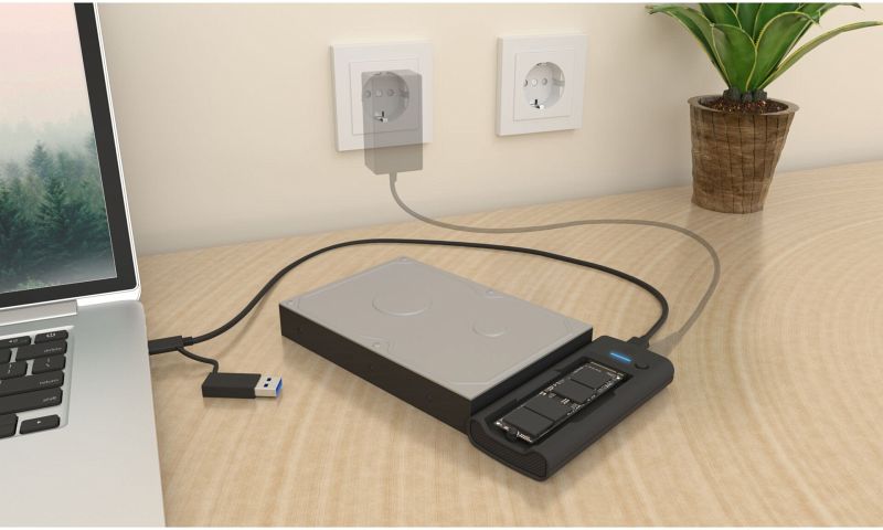 Unterstützt sowohl M.2 NVMe / SATA SSDs als auch 2,5"/3,5" SATA III Laufwerke und bietet somit Flexibilität, um mit verschiedenen Speichergeräten zu arbeiten. Dank dieser Anpassungsfähigkeit können Sie Ihre Speichersysteme an wechselnde Anforderungen anpassen und eine breite Palette von Laufwerkstypen ohne Einschränkungen nutzen.
