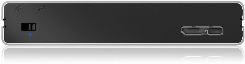 Schützt vor Datenverlust und -manipulation: Der Schreibschutzschalter an der Rückseite des Gehäuses schützt vor dem versehentlichen Löschen von Daten. Er funktioniert ähnlich wie der Schreibschutzschalter einer SD-Karte. Ein weiterer wesentlicher Vorteil eines solchen Schreibschutzes ist, dass die Inhalte auf den so gesicherten Laufwerken nicht mehr durch Sicherheitslücken einer Software manipulierbar sind. Der Anwender bekommt die vollständige Kontrolle, wann bestimmte Daten vom Host-Computer verändert werden dürfen.