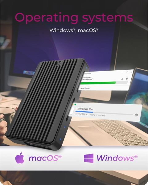Das ICY BOX IB-CR602M-C31 ist ein vielseitiges externes SSD-Gehäuse, das sowohl M.2 NVMe als auch M.2 SATA SSDs unterstützt. Es verfügt über einen integrierten Dual-SD 4.0 Kartenleser (UHS-II) für schnellen Zugriff auf Speicherkarten. Dank USB 3.2 Gen 2 erreicht es Datenübertragungsraten von bis zu 10 Gbit/s und erlaubt gleichzeitigen Zugriff auf SSD und SD-Karten (Multi-LUN). Das robuste Aluminiumgehäuse mit integriertem Kühlkörper sorgt für effiziente Wärmeableitung und schützt die Hardware zuverlässig.