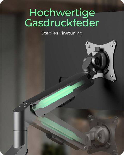 - Fortschrittliche Gasfeder: Erzielen Sie ergonomischen Komfort mit diesem verstellbaren Monitorständer, der mit einer hochwertigen Gasfeder für präzise Höheneinstellungen und eine stabile Positionierung ausgestattet ist