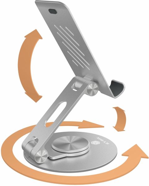 Ein schlanker und robuster Ständer für Smartphones und Tablets bis zu 12,9 Zoll. Der aus Aluminium, Karbonstahl und Silikonkautschuk gefertigte Ständer lässt sich um 360° drehen und gewährt so optimale Betrachtungswinkel. Mit seinem kompakten und dennoch robusten Design kombiniert dieser Ständer Stabilität mit ergonomischem Komfort und ist damit ideal für verschiedene Szenarien. Er hält Ihr Smartphone oder Tablet sicher in einem optimalen Betrachtungswinkel. Er eignet sich für die Verwendung auf Schreibtischen, Arbeitsplatten oder Nachttischen und bietet maximalen Komfort, während er gleichzeitig einen modernen Touch in jede Umgebung bringt.