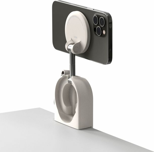 Der dreh- und schwenkbare Arm erlaubt eine flexible Ausrichtung des Geräts, ganz nach Bedarf im Hoch- oder Querformat. MagSafe-kompatible Smartphones haften magnetisch und zuverlässig an der Halterung, während für andere Modelle ein Magnetringadapter beiliegt und so eine universelle Nutzung ermöglicht.