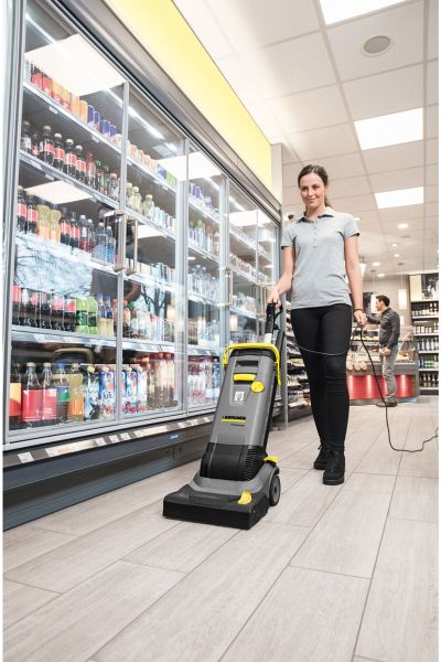 Die sehr kompakte und mit nur 12 kg sehr leichte Scheuersaugmaschine BR 30/4 C ist die innovative und kraftvolle Alternative zur manuellen Reinigung von Hartflächen von 20 bis 200 m². Der Boden ist nach der Reinigung sofort trocken und damit rutschhemmend und wieder begehbar. Ideal zum Reinigen von kleineren Ladengeschäften, Restaurants, Tankstellen, Supermärkten, Sanitärbereiche, Hotels im Imbiss-Bereich oder auch als Ergänzung zu bestehenden Scheuersaugmaschinen. Mit Handabsaugung für Absaugung unzugänglicher Ecken. Mit Mikrofaserwalze speziell zur Reinigung von Feinsteinzeugfliesen.