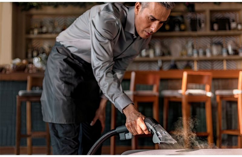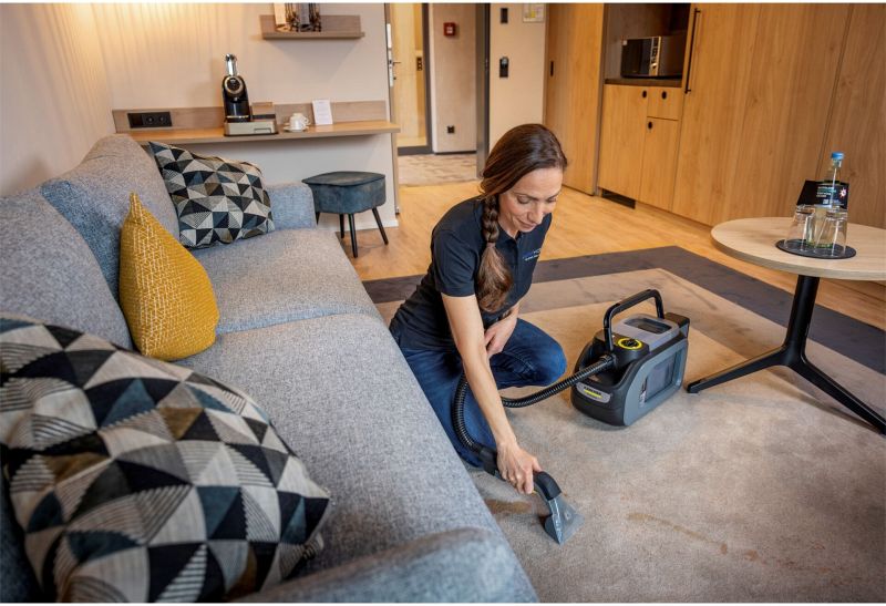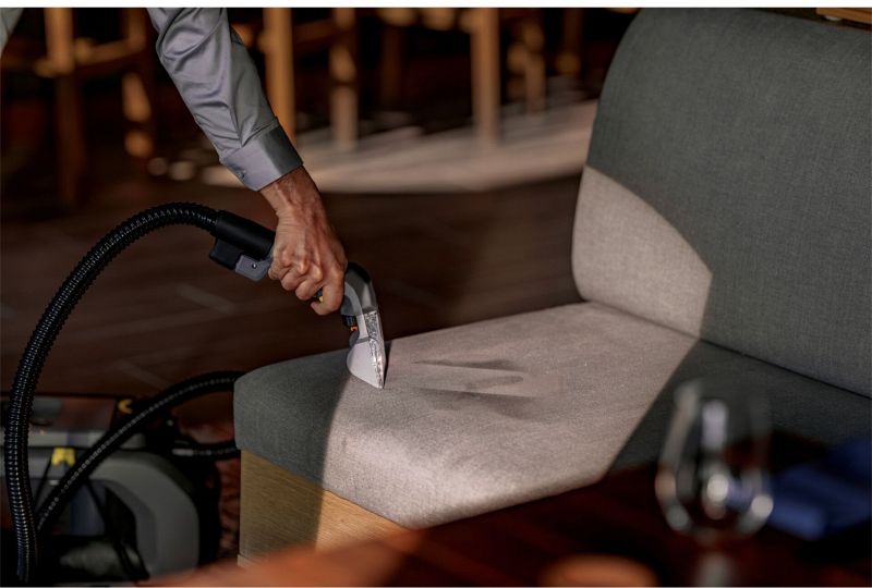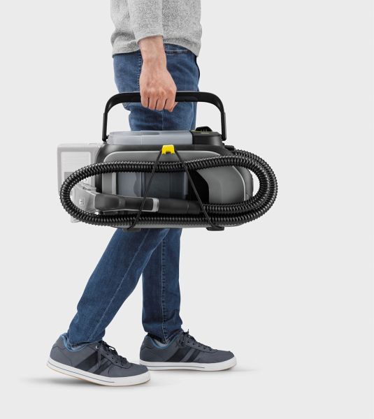 Der Akku-Sprühsauger Puzzi 2/1 Bp entfernt mühelos frische und eingetrocknete Flecken auf Polstern, Autositzen und anderen Textilien. Dank hoher Saugleistung sorgt er für schnelle Trocknung. Durch sein kompaktes Design, geringes Gewicht und den ergonomischen Griff lässt er sich bequem mit einer Hand tragen. Die Reinigungslösung wird tief in die Fasern gesprüht und samt Schmutz wieder aufgesaugt. Enthalten sind Polsterdüse, Sprüh-/Saugschlauch, getrennte Behälter für Frisch- und Schmutzwasser sowie integrierte Zubehör-Aufbewahrung.