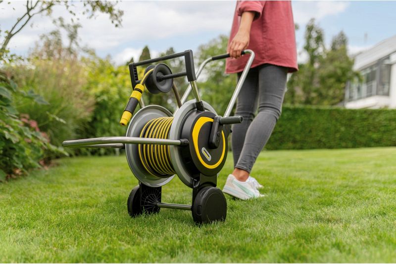Robust und stabil zugleich: Der Schlauchwagen ermöglicht eine platzsparende Aufbewahrung des Gartenschlauchs und ist sehr komfortabel in der Handhabung. Dank der robusten Metalltrommel sind auch höchste Beanspruchungen kein Problem. Durch die ergonomische Kurbel sowie die stabile Schlauchführung lässt sich der Schlauch zuverlässig aufrollen. Außerdem punktet der Schlauchwagen durch einen extra breiten Standfuß für höchste Standsicherheit und UV- wie auch Frostsicherheit. Dank der innovativen Schnellspanner kann der teleskopierbare Handgriff komfortabel auf die passende Höhe eingestellt oder auch komplett nach unten geschoben werden. Letzteres sorgt vor allem für eine platzsparende Verstauung. Der Schlauchwagen wird fertig montiert geliefert. Kärcher Schlauchaufbewahrungen zeichnen sich durch eine hohe Robustheit und Langlebigkeit aus.
