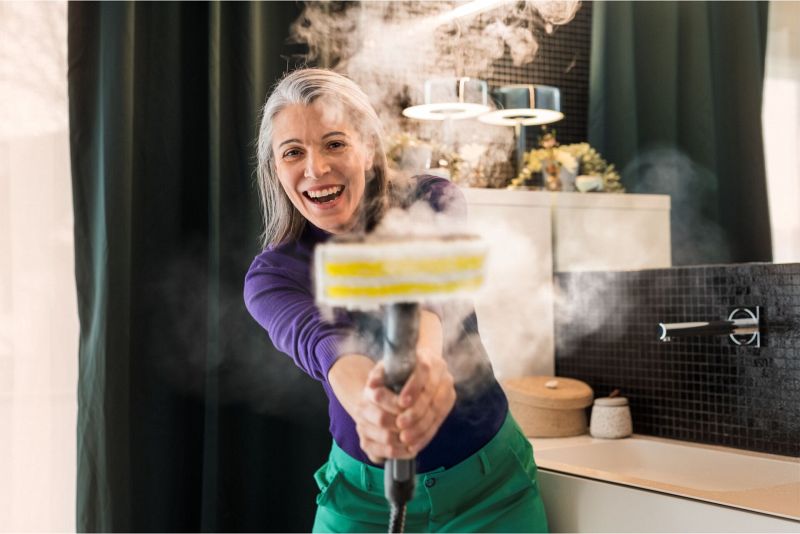 Einfaches Anbringen des Tuchs an der Handdüse nur durch Andrücken. Kein Verrutschen des Tuchs beim Reinigen.