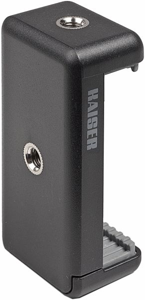 Zur Befestigung eines Smartphones auf einem Stativ bzw. an einer Halterung mit 1/4"-Anschlussgewinde. Gummierte Schnellklemme mit Spannweite 55 - 90 mm. Maße (BxHxT): 36 x 73(-108) x 24 mm.
