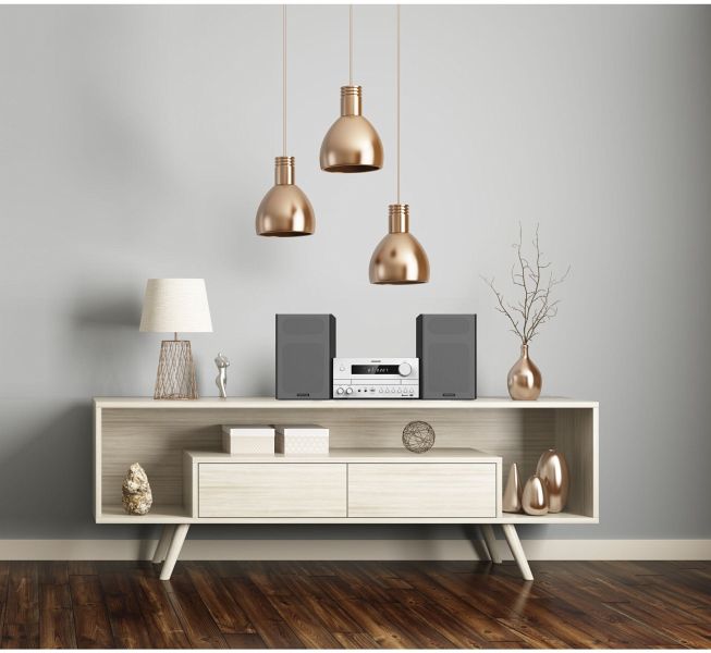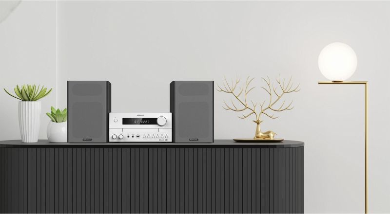Die puristisch weiße Haupteinheit der M-822DAB passt dank durch und durch weißer Farbgebung perfekt in moderne Wohnräume - die kräftigen Lautsprecher verschwinden elegant im Bücherregal und setzen die 2 x 50 W Verstärkerleistung mit Musik von CD, USB, BT oder DAB+ in puren Musikgenuss um! Kenwood M-822DAB - ein Genuss für Auge und Ohr!