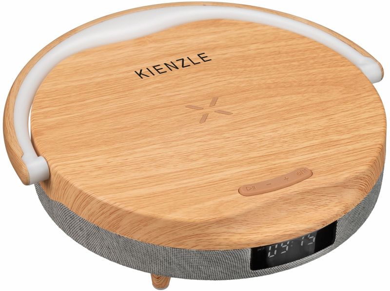 Starte deinen Tag mit dem Kienzle LED-Wecker, der nicht nur die Zeit anzeigt, sondern auch dein Smartphone kabellos lädt und Musik über den integrierten Bluetooth Lautsprecher abspielt. Mit seinem praktischen Henkel und der schicken Holz-Optik ist er ein echter Hingucker in jedem Raum.