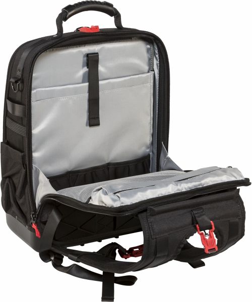 - Zwei separate Innenfächer auf Vorder- und Rückseite für Werkzeug, Messgeräte, Notebook oder Tablet