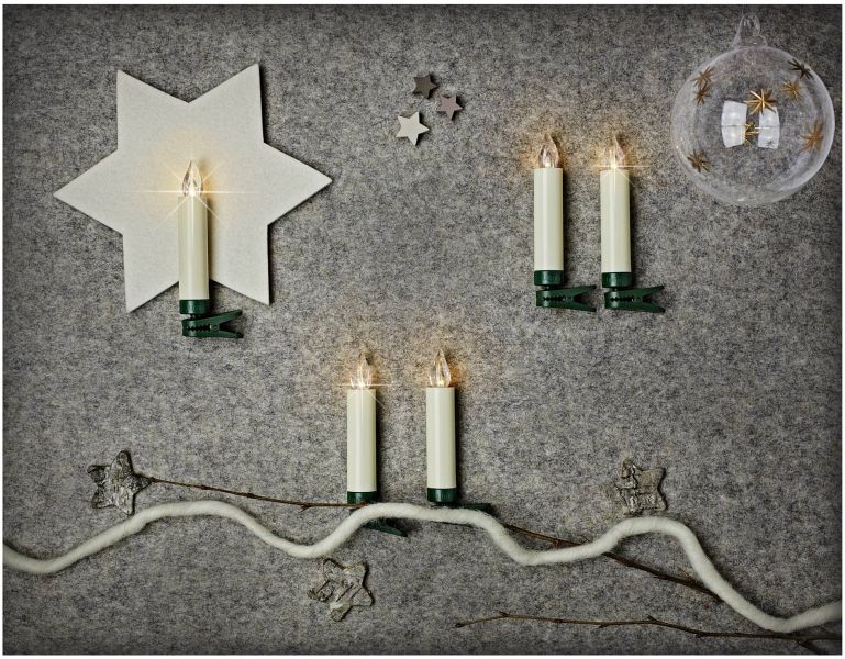 - Der Halteclip ermöglicht eine schnelle, flexible Befestigung der Kerzen am Baum