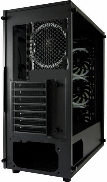 Gehäusetyp: Midi-TowerLaufwerkeinschub 2,5": 2x internLaufwerkeinschub 3,5": 2x internPCIe Erweiterungssteckplätze / -slots: 7xBeleuchtung: JaSeitenteil: FensterMax. CPU-Kühlerhöhe (mm): 165Max. Grafikkartenlänge (mm): 370Installierte Lüfter: 4x 120 mm