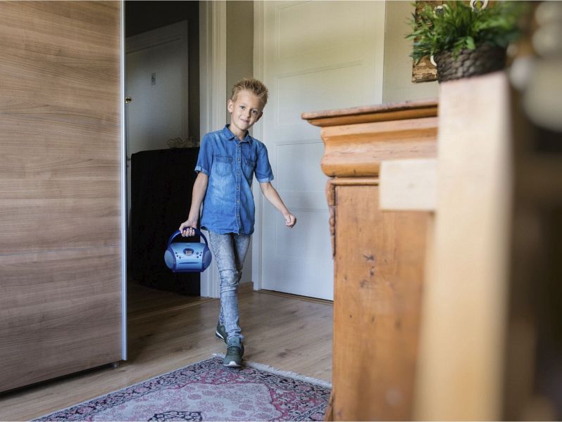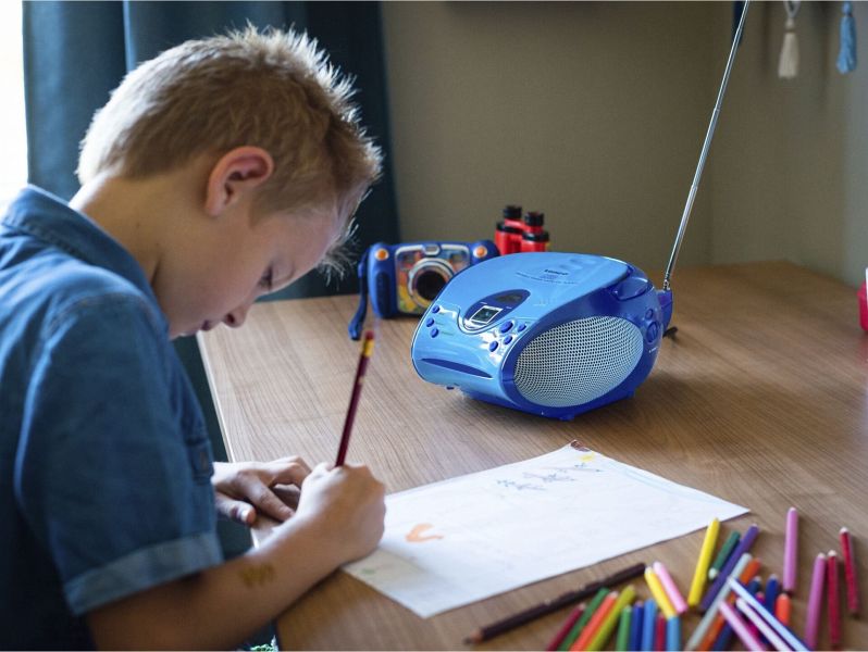 Der Lenco SCD-24 hat eine kompakte Größe und ist mit einem Handgriff ausgestattet, so dass das Radio leicht bewegt werden kann. Fahren Sie mit dem Lenco SCD-24 in den Park oder zu einer Party mit Freunden. Stehen Sie mit den Melodien Ihres tragbaren Radios auf und singen Sie zu den Hits Ihres Lieblingskünstlers. Der Lenco SCD-24 bringt Farbe in Ihre Musik.