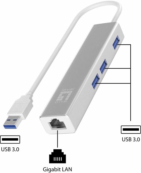 Mit dem USB-Hub und dem Gigabit-Ethernet-Kombiadapter von LevelOne können Sie sich über den integrierten USB-Anschluss Ihres Laptops ganz einfach mit dem Internet verbinden. Dies ist eine ideale Lösung für MacBooks oder andere Windows-Computer, die möglicherweise über ein integriertes WLAN verfügen, aber nicht über einen Ethernet-Anschluss verfügen. Manchmal müssen Sie eine physische Verbindung zu einem Netzwerkkabel herstellen, um Dateien zu übertragen oder auf sichere Informationen zuzugreifen. Der USB-0503 erledigt die Arbeit ganz einfach über Ihren USB-Anschluss. Der USB-0503 kombiniert auch einen normalen USB-Hub. So können Sie externe USB-Peripherie wie MP3-Player, Digitalkamera, Drucker oder USB-Stick anschließen. Der USB-0503 stellt einen direkten Punkt-zu-Punkt-Kontakt zwischen dem Hub und dem an Ihren PC angeschlossenen Adapter her.