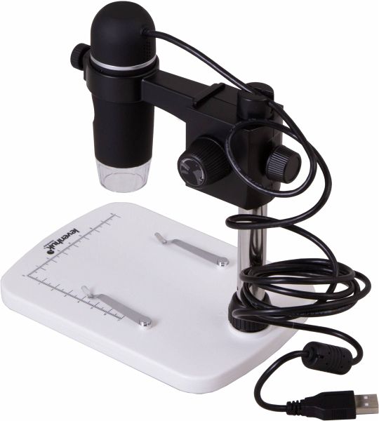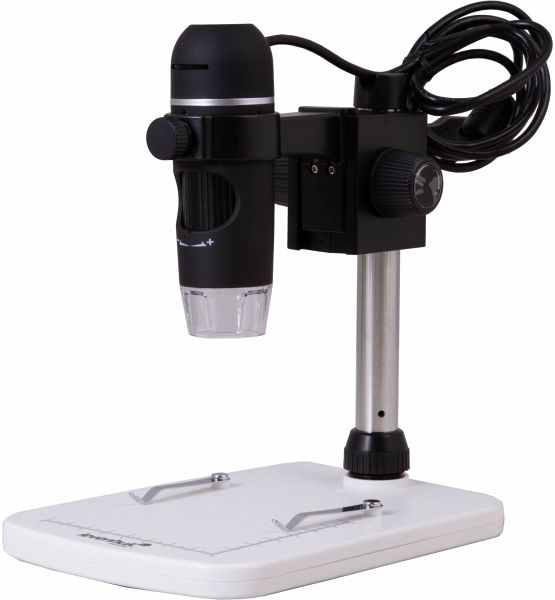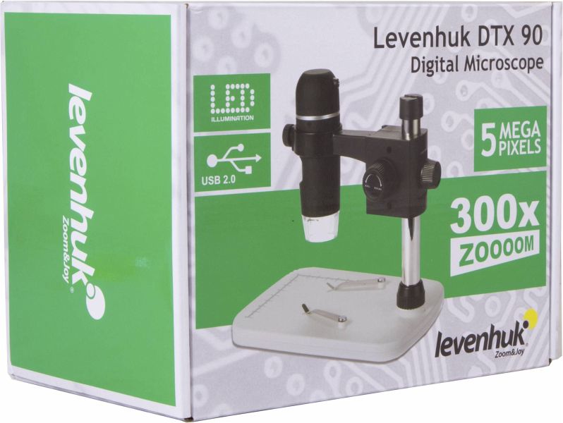 Das Levenhuk DTX 90 ist ein modernes professionelles USB-Mikroskop für Hochpräzisionsarbeiten. Das Mikroskop ist mit einer 5-Megapixel-Kamera ausgestattet und bietet eine Vergrößerung im Bereich von 10x bis 300x. Im Lieferumfang befinden sich ein spezielles Stativ und ein Objekttisch mit Messskala (8 cm entlang der x-Achse, 7 cm entlang der y-Achse) und zwei Klammern zur Befestigung der Probe unter der Kamera.
