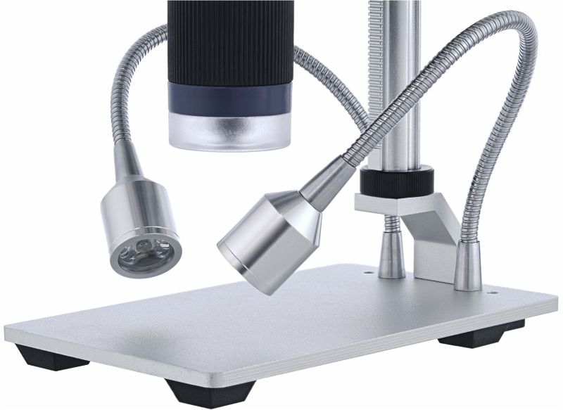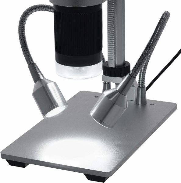 - Lichtquelle: 2 Punktbeleuchtungen an flexiblen Haltern und Beleuchtung im Objektiv