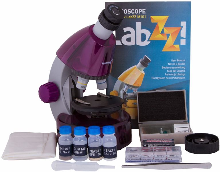 Wie sieht ein kleines Käferchen bei hoher Vergrößerung aus? Wie sind Pflanzen aufgebaut? Was lebt so alles in einem Wassertropfen aus dem Teich? Mit dem Levenhuk LabZZ M101 Mikroskop finden Kinder Antworten auf diese und viele weitere Fragen, die ihnen durch ihre neugierigen jungen Köpfe gehen. Alles, was sie für die ersten eigenen Experimente benötigen, wird mitgeliefert - fertig präparierte Proben, spezielle Instrumente für die Arbeit mit dem Mikroskop und ein lehrreiches Begleitheft mit vielen interessanten Experimenten.