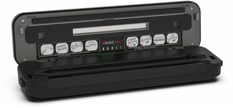 Das MAGICVAC Folienschweißgerät Compact verfügt über ein praktisches Sichtfenster zur optimalen Positionierung der Beutel. Der eingebaute Beutelschneider und das Fortschrittsanzeigesystem mit 5 LEDs machen die Bedienung besonders einfach und effizient. Mit einem abnehmbaren Netzkabel und wasserdichter Steckerabdeckung ist es zudem sehr praktisch und sicher im Gebrauch. Dieser Vakuumierer ist ideal für die alltägliche Nutzung.