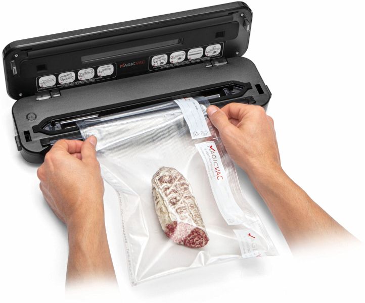Das MAGICVAC Vakuumiergerät Compact bietet eine herausragende Lösung zur Lebensmittelkonservierung. Mit seinem kompakten Design und seiner leistungsstarken Pumpe ist es ideal für den Einsatz in jeder Küche. Es ermöglicht eine schnelle und einfache Vakuumversiegelung, die Ihre Lebensmittel länger frisch hält.