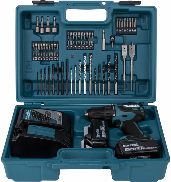 Makita DHP490RFX3 Akku-Schlagbohrschrauber 18V (2x 3,0 Ah + Schnellladegerät) + 74tlg. Bit-Set