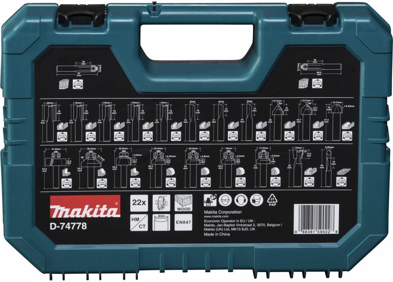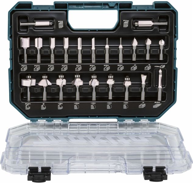 Das Makita Fräser-Set D-74778 ist ein 22-teiliges Set, das speziell für präzise Holzarbeiten entwickelt wurde. Es enthält eine Vielzahl von Fräsern mit einem Schaftdurchmesser von 8 mm und wird in einem robusten Transportkoffer mit transparentem Deckel geliefert. Dieses Set ist ideal für Schreiner, Heimwerker und Möbelfabriken, die Wert auf Qualität und Vielseitigkeit legen.