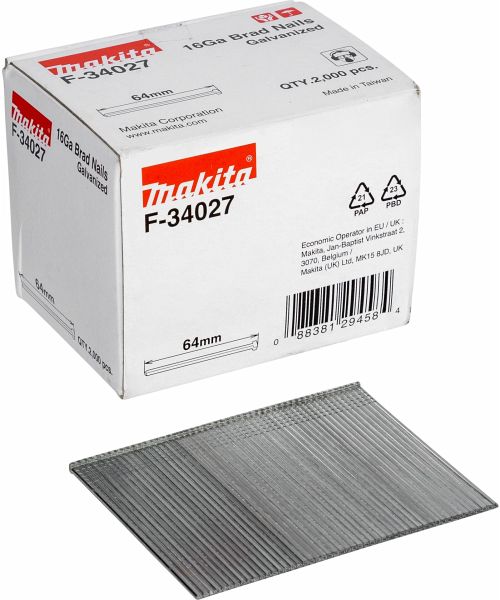 Stärke: 1,6 mm | Gauge: 16 Ga | Länge: 64 mm | Anzahl: 2000 | Passend für Makita Akku-Stauchkopfnagler DBN600