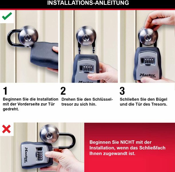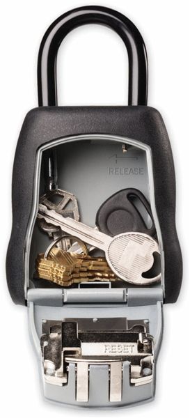 - Schlüsselkasten mit Bügel, der an verschiedenen Stellen angebracht werden kann