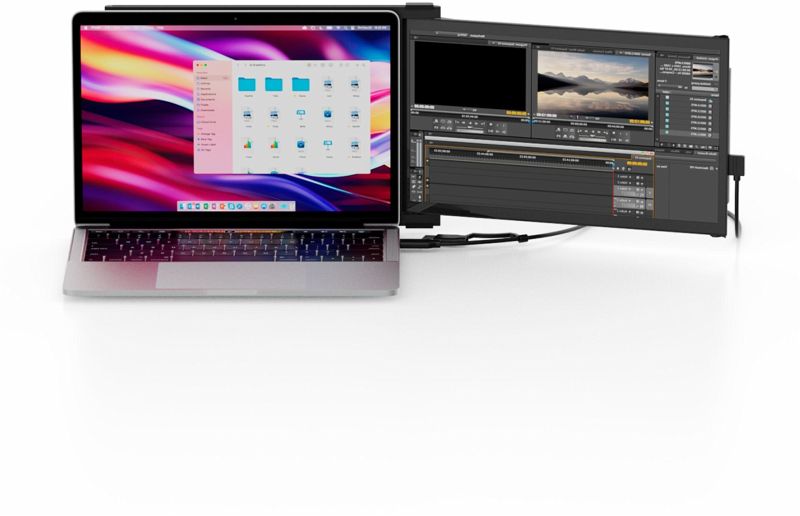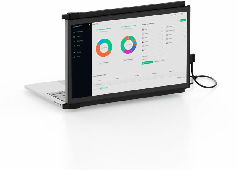 Die 13,3-Zoll-Bildschirmerweiterung kann bequem über das mitgelieferte duale USB-C- auf USB-A- und USB-C-Kabel mit dem Laptop verbunden werden. Duex Plus wird anhand der im Lieferumfang enthaltenen Magnete, die mit Hilfe von 3M-Klebeflächen an der Rückseite des Laptops angebracht werden können, befestigt und lässt sich zu beiden Seiten des Laptops ausziehen. Er bietet eine Auflösung von 1080 Pixel, das Farberlebnis kann dabei dank der einstellbaren Helligkeitsstufen und Farbtemperaturen individuell an die jeweilige Arbeitsumgebung angepasst werden. Außerdem ermöglicht die 270-Grad-Rotation unterschiedliche Modi: Präsentationsmodus, Portraitmodus und Landschaftsmodus. Die integrierten Gyrosensoren erkennen die jeweilige Bildschirmausrichtung automatisch, sodass die Inhalte entsprechend gedreht werden. Duex Max ist für die magnetische Anbringung an Bildschirmen mit einer Diagonale von 13 bis 14 Zoll geeignet.