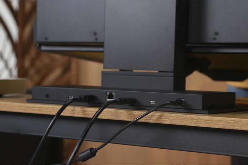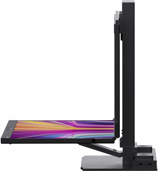Für noch mehr Produktivität sorgt die elegant integrierte Dockingstation. Damit wird der komplette Überblick der dualen Bildschirmerweiterung durch eine hohe Funktionalität abgerundet. Mit dem 10-in-1-Multiport-Design lassen sich jeweils zwei USB-A- und USB-C- Anschlüsse nutzen. Der USB-C PD verfügt über eine schnelle und intelligente Ladeleistung mit bis zu 100 Watt. Zudem verfügt die Docking Station über zwei HDMI-Anschlüsse, einen Audioanschluss, einen Anschluss für Ethernet sowie einen SD- und MicroSD-Kartenleser. Das Dock integriert die umliegenden Peripheriegeräte und ermöglicht einen freien Arbeitsplatz ohne störendes Kabelgewirr.
